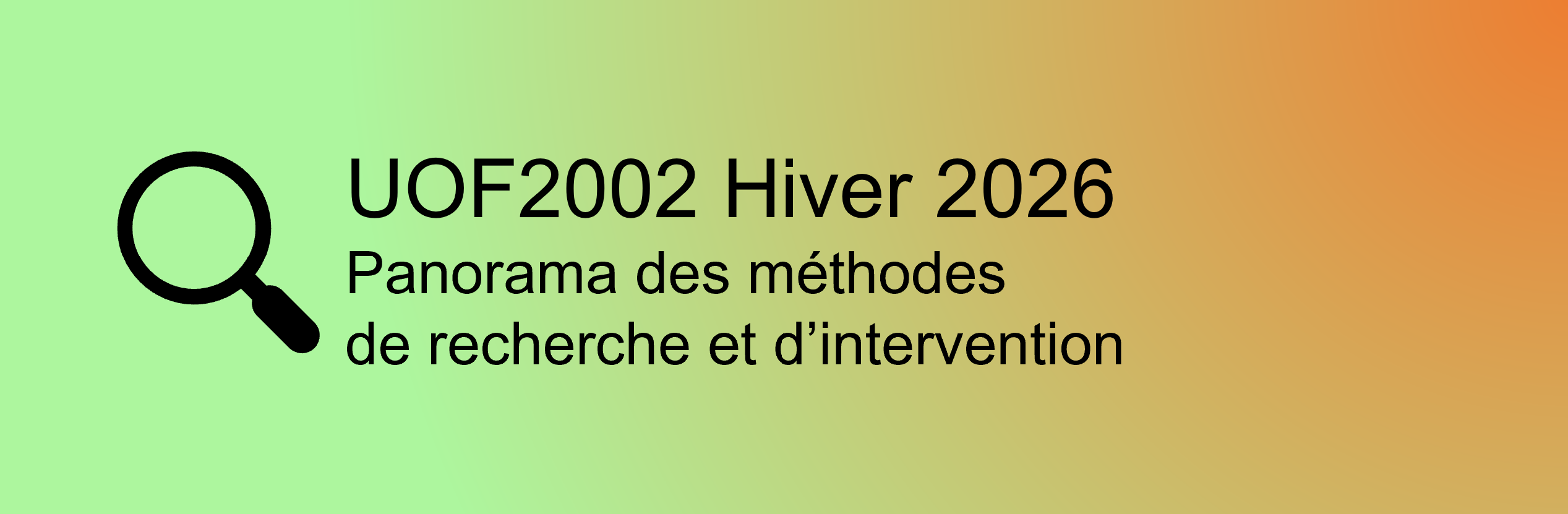 UOF2002-H26-01 - Panorama des méthodes de recherche et d’intervention 📆 Lundi 🕐 9:00 🏫 229C (3 crédits)